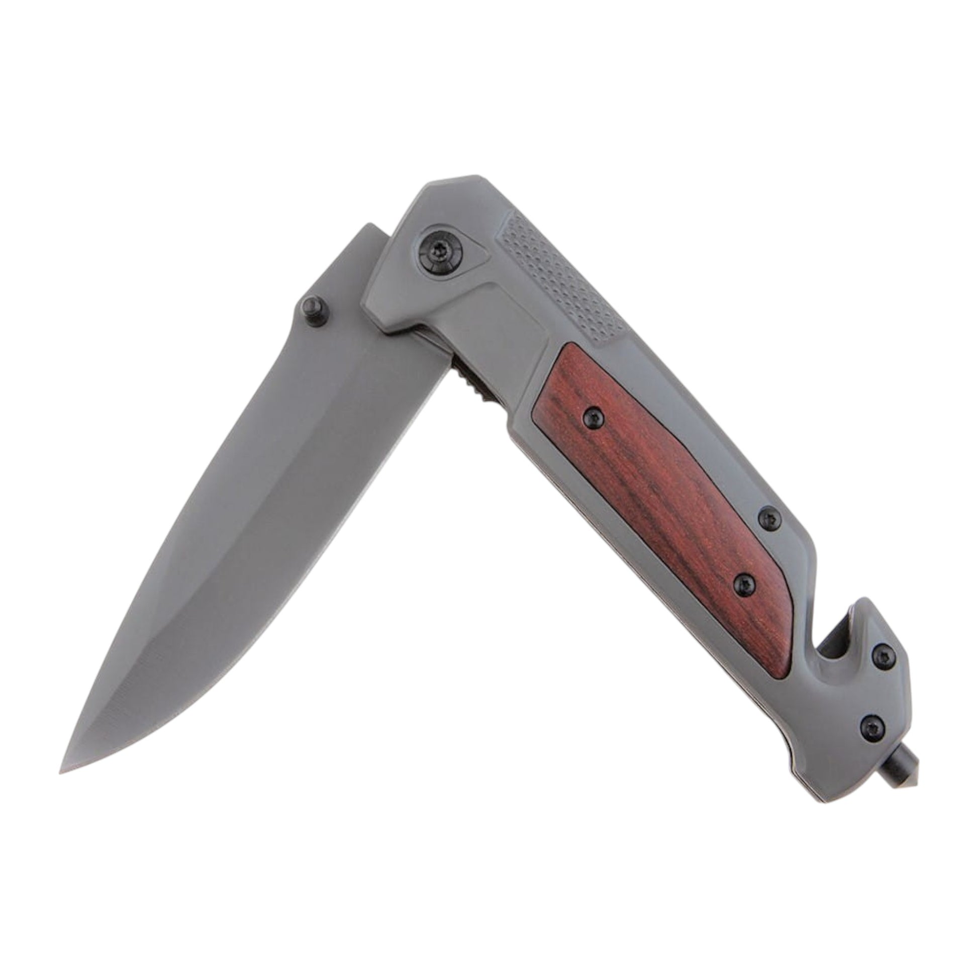 - Papildomi elementai: stiklo daužiklis, segtukas, ašmenys diržams ir virvėms pjauti