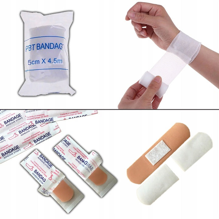| Pirm. Pagalba / Mityba | Pirmosios Pagalbos Tvarstis , 2 vnt. Lipnių pleistrų, Daugiafunkcinis Šaukštas su šakute, Velcro buteliuko laikiklis. | Šaukštas/šakutė iš nerūdijančio plieno . |