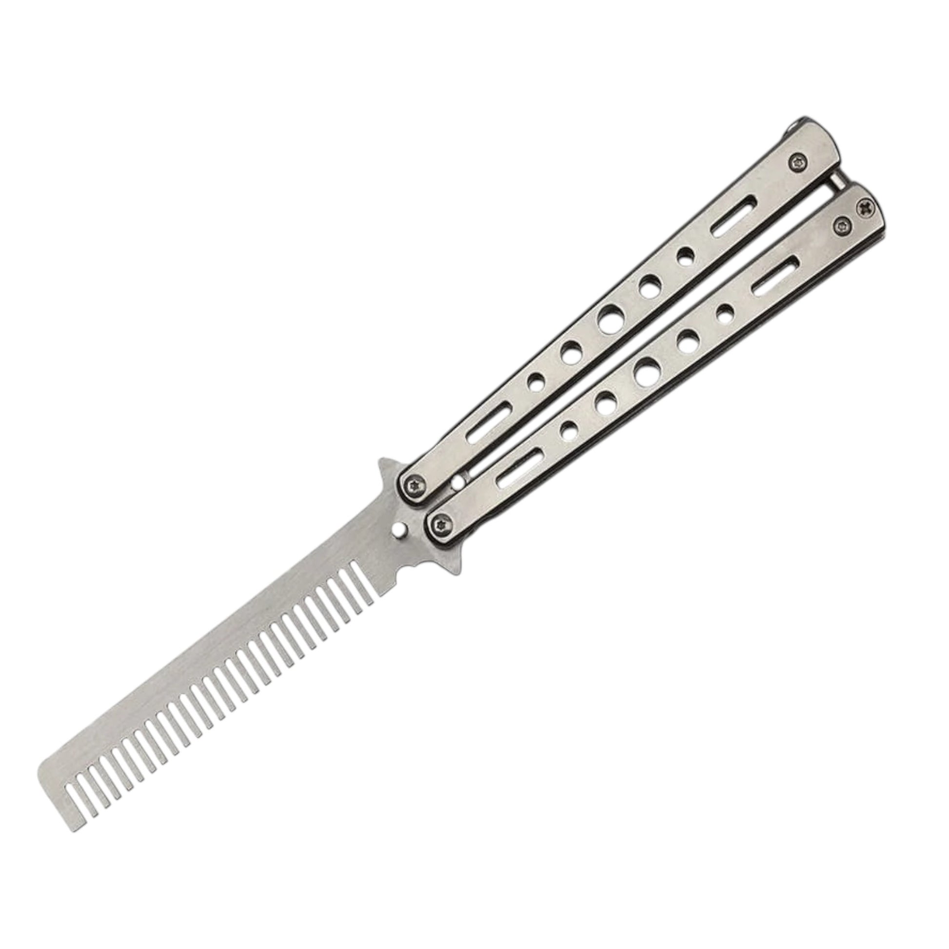 Mokomasis peteliškės peilis su funkcinėmis šukomis vietoj ašmenų.