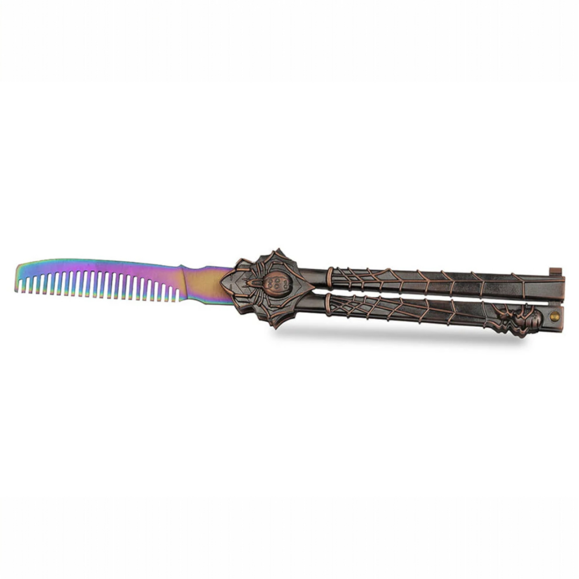 Ši patvari peilio geležtė papildomai padengta įvairiaspalviu oksidu, suteikiančiu visumai įspūdingą vaivorykštės išblukimo efektą.