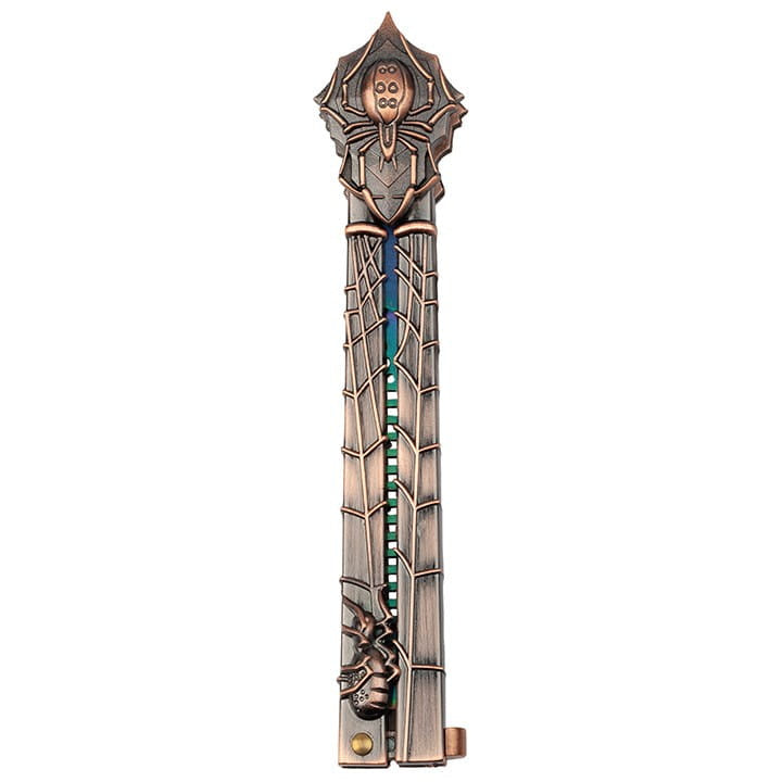 Nikelio spalvos rankena buvo gausiai papuošta jau minėtais voratinkliais ir dideliais vorais.