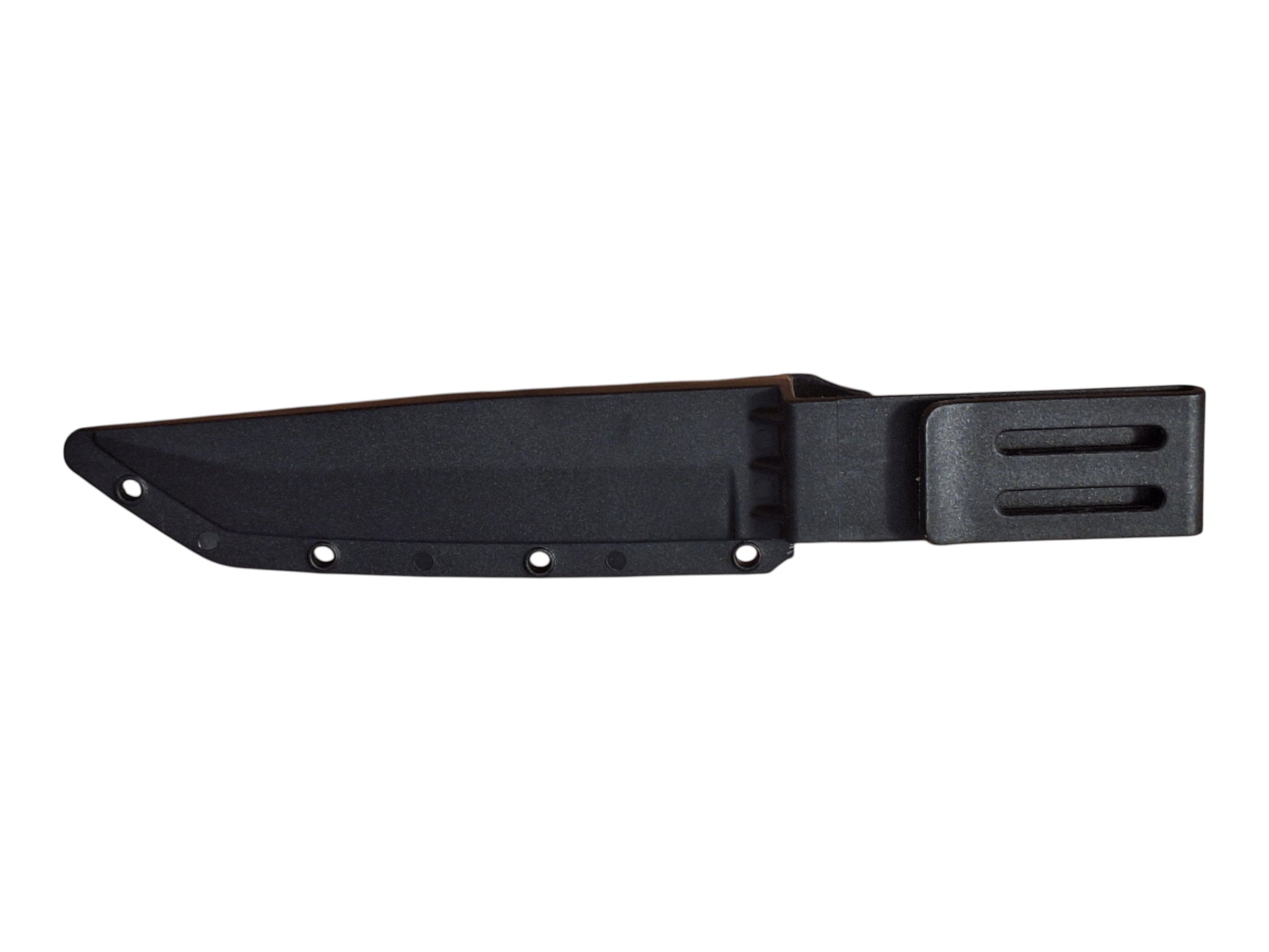 Pokrowiec pagamintas iš to paties polimero kaip rankena – lengvas, aštriai saugo ir turi stiprų klipsą, neleidžiantį peiliui netikėtai iššokti.