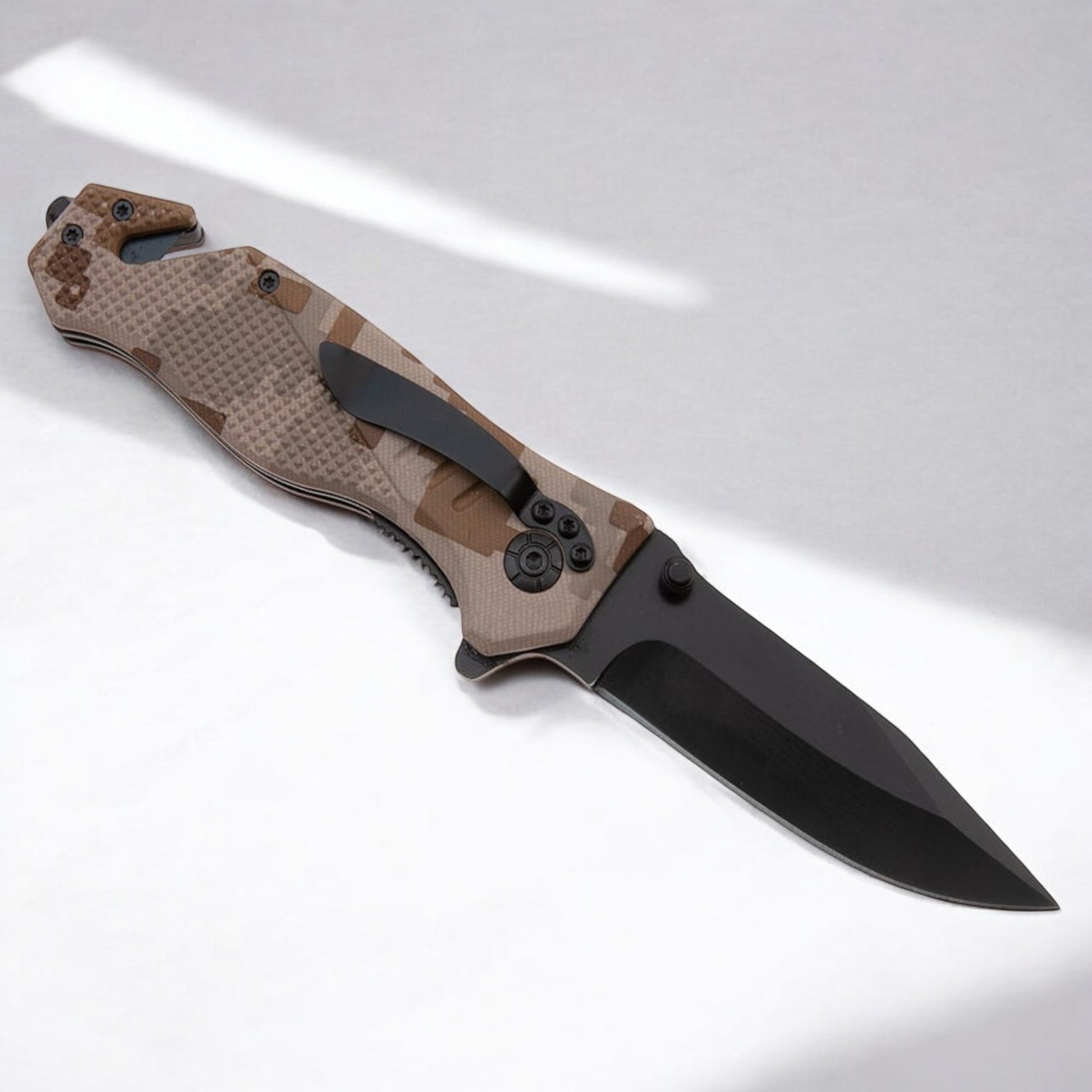 Universalus gelbėjimo įrankis: sulankstomas peilis su funkcijomis, pritaikytomis avarijoms ar ekstremalioms situacijoms — idealiai tinka pjauti saugos diržus, virves ar kitus tvirtus paviršius, taip pat gali būti naudojamas gelbėjimo, gelbėjimosi ar evakuacijos atvejais.