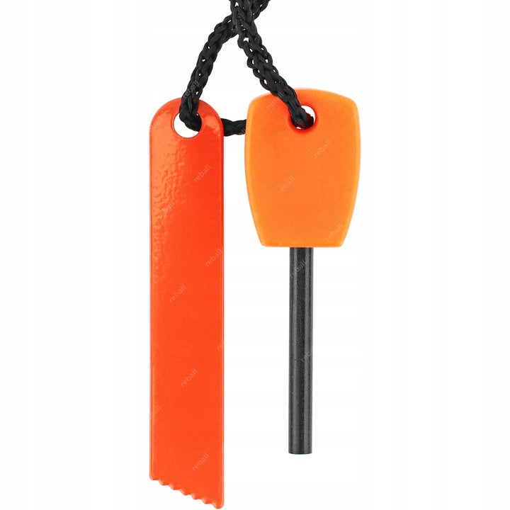| Ugnis ir Signalai | Magnio pintis (titnagas) su plokštele, Avarinis švilpukas (raktų pakabukas). | Pintis – patikimas ugnies šaltinis; Švilpukas (aliuminio) – greitam signalizavimui ir saugumui. |