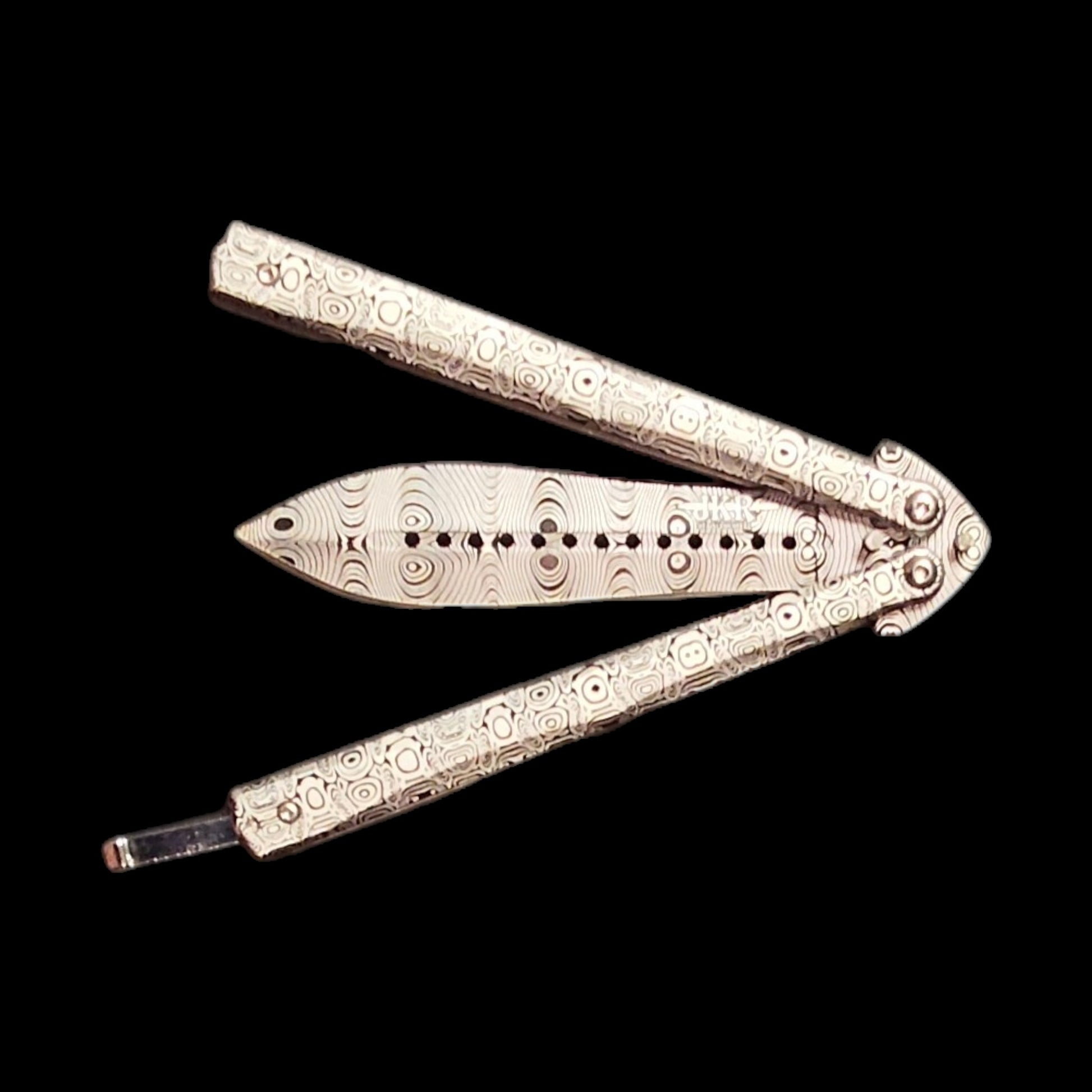 Joker JKR0644 „Butterfly“ drugelio tipo peilis, 11 cm, aliuminio rankena, damasko raštas