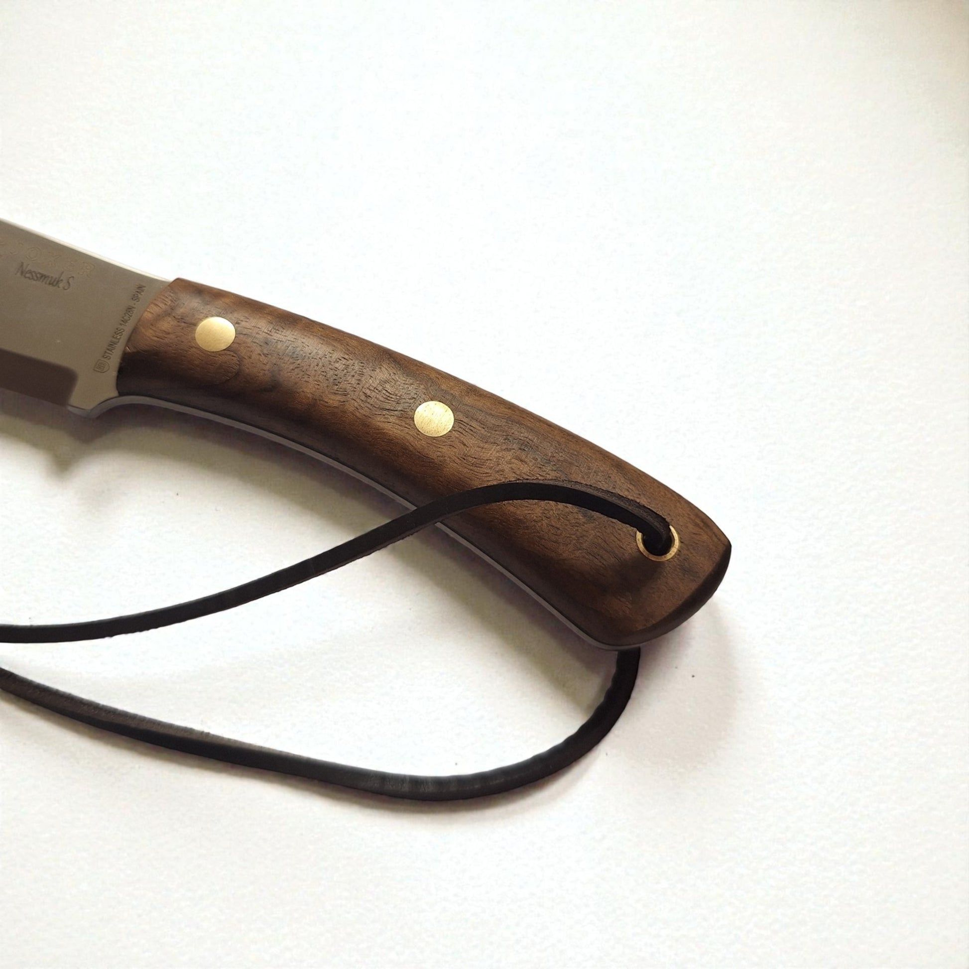 Natūralaus riešutmedžio rankena suteikia peiliui elegantišką išvaizdą ir užtikrina patogų bei stabilų laikymą naudojant gamtoje. Ergonomiška forma leidžia patogiai naudoti peilį net ir ilgesnį laiką.