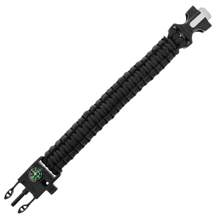 4-in-1 Parakordo Apyrankė 22 cm ilgio, su integruotu ugnies uždegikliu, švilpuku ir kompasu.