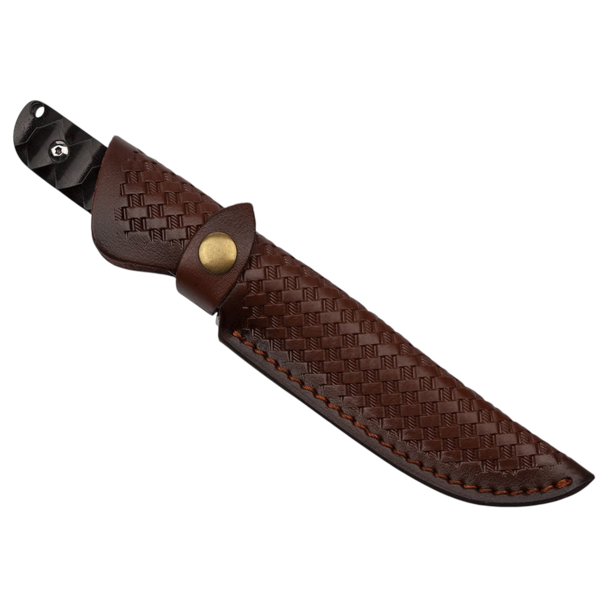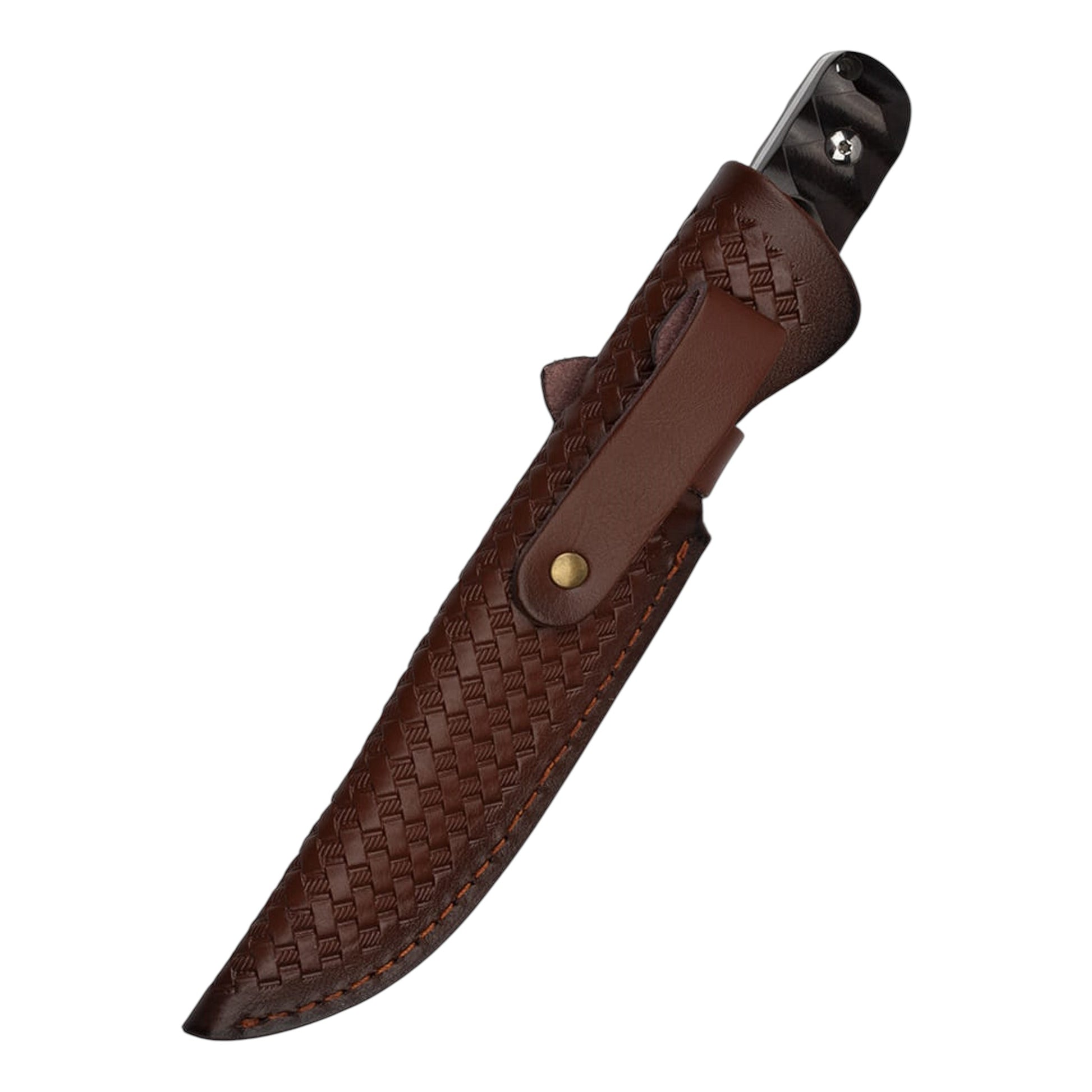 Gražiai pagamintas, efektyviai atrodantis medžioklinis peilis, pagamintas iš aukštos kokybės plieno.