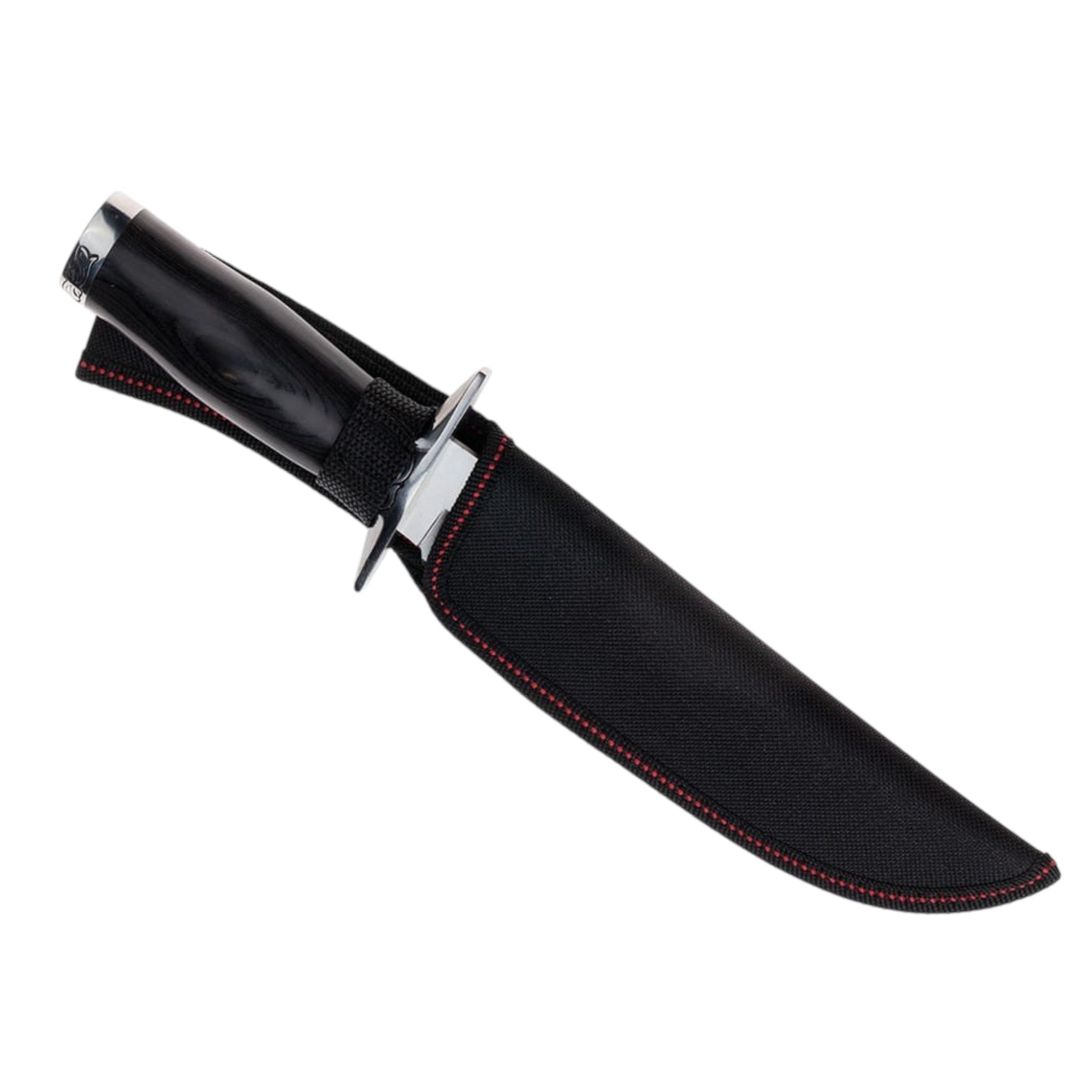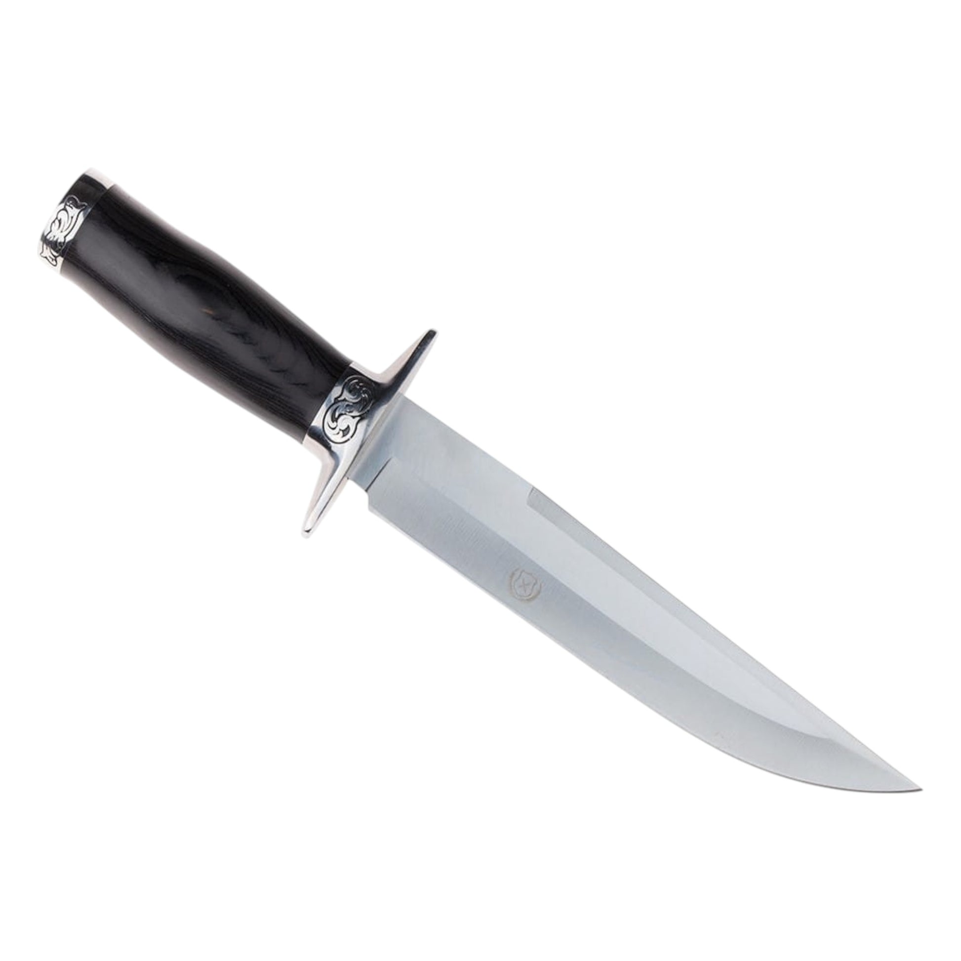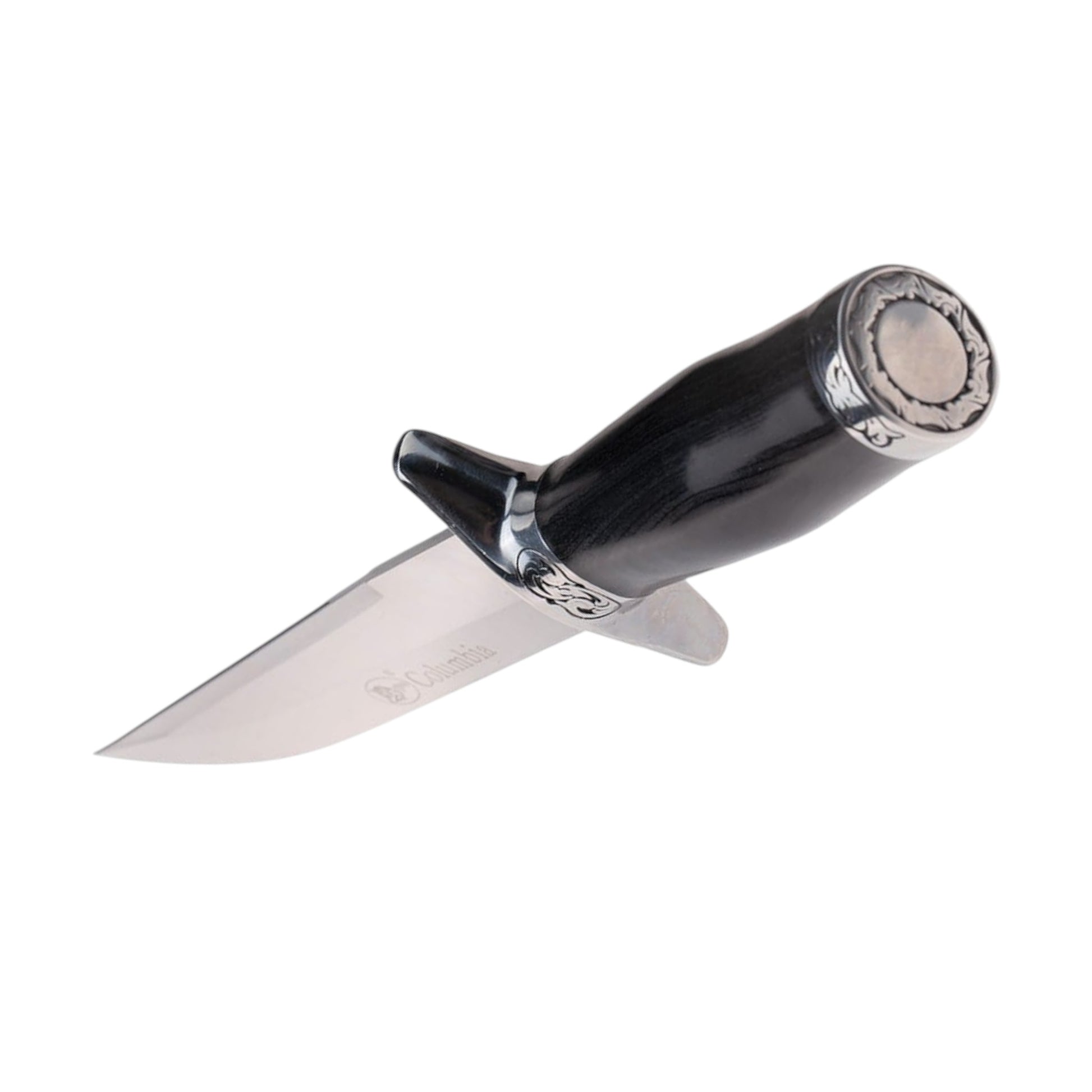 Tradicinis medžioklinis peilis turi metalinę kryžminę apsaugą, kuri apsaugo nuo galimo praslydimo.