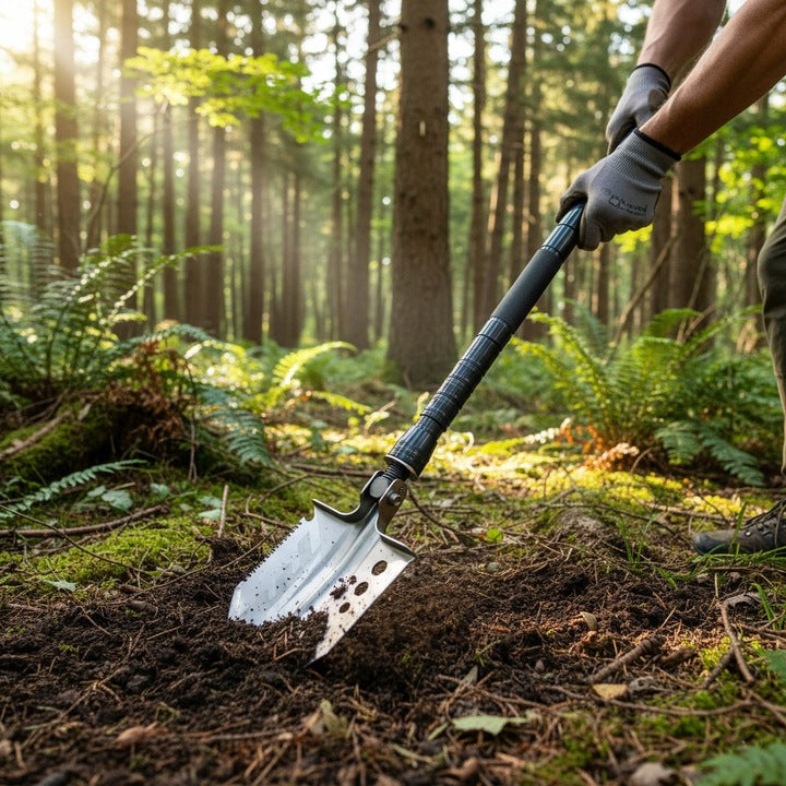 Sulankstomas Kastuvas 15-in-1 Išgyvenimo ir Stovyklavimo Rinkinys