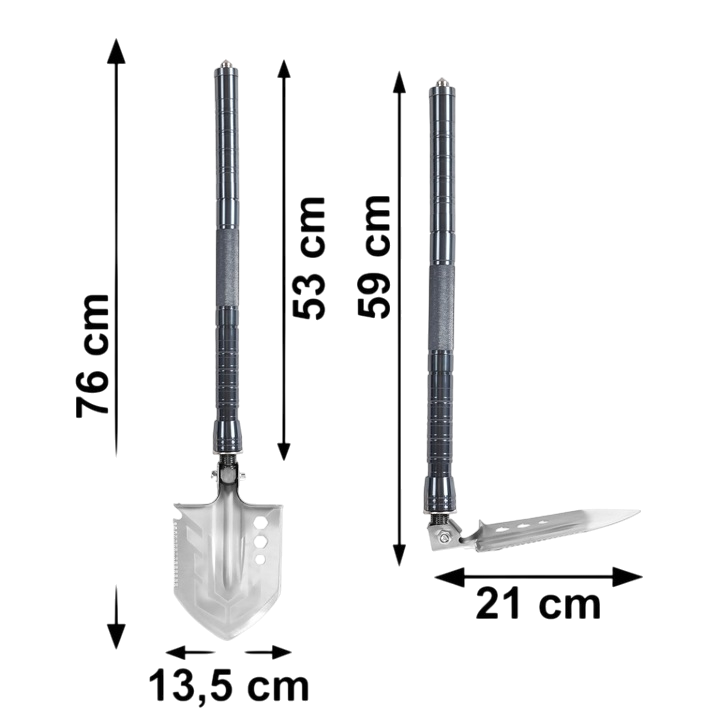 Šis yra praktiškas ir tvirtas įrankis, kuris pravers sulankstomas kastuvas 15-in-1 Išgyvenimo ir Stovyklavimo Rinkinys bet kokioje situacijoje Dėl galimybės išardyti į atskirus komponentus ir reguliuojamo ilgio jis tinka išgyvenimui, stovyklavimui, sodininkystei ar namų dirbtuvėms.