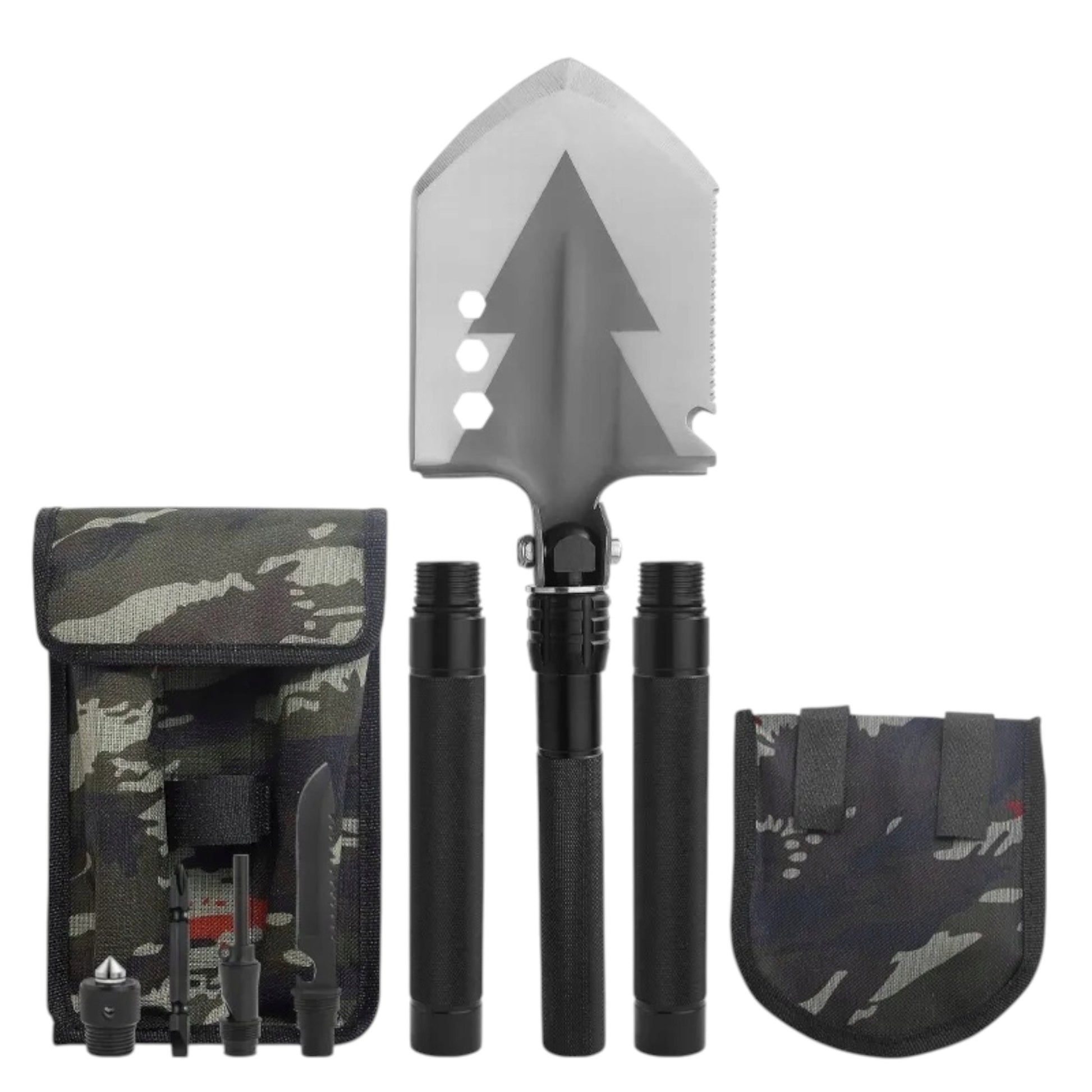 4-in-1 Kastuvo Geležtė: Dėl reguliavimo kastuvą galima naudoti kaip: kastuvą, kirvį, kirtiklį ar kauptuką.