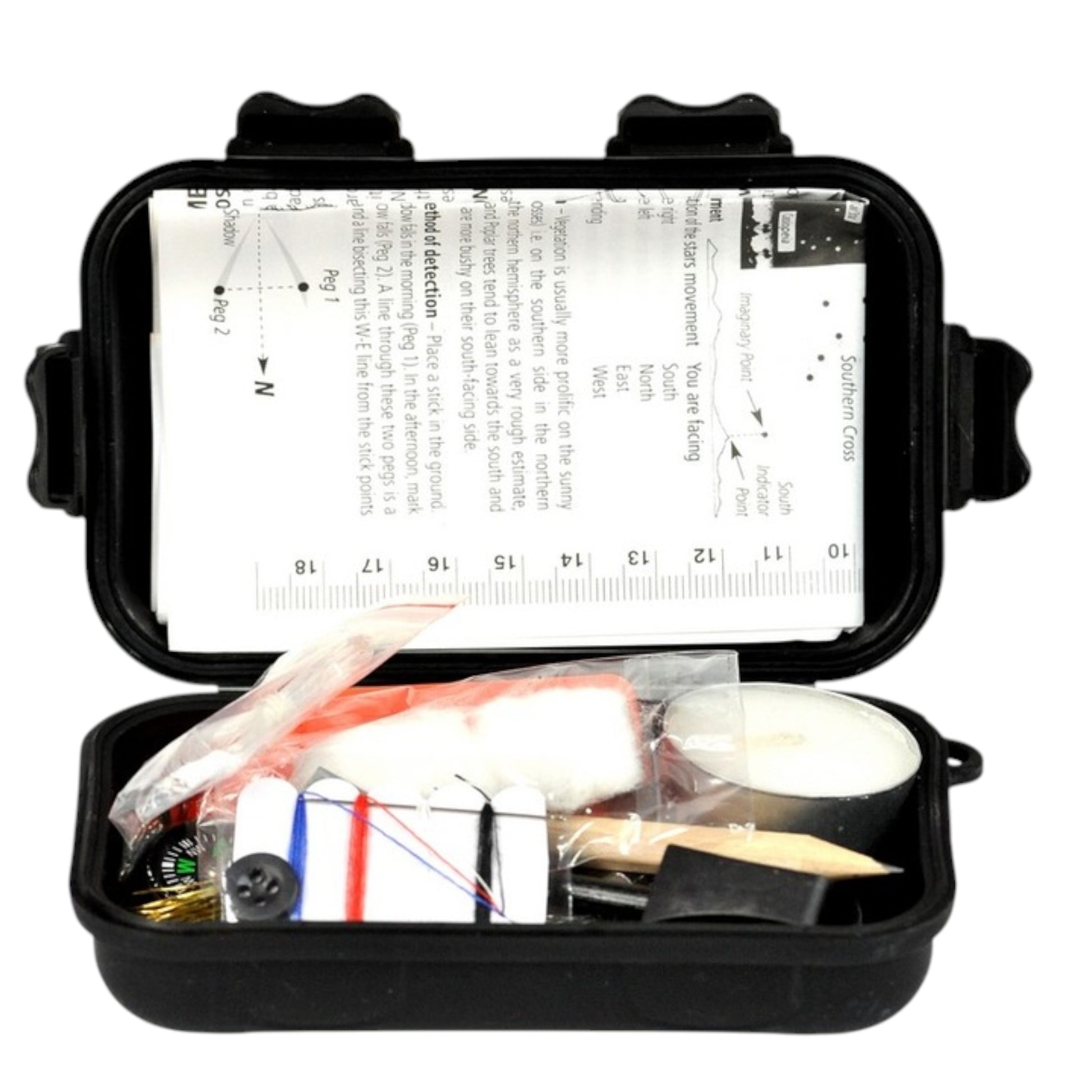 Texar vandeniui atsparus išgyvenimo rinkinys yra specialiai sukurtas maksimaliai padidinti Jūsų išlikimo galimybes ekstremaliomis sąlygomis. Kompaktiška dėžutė apsaugo visus komponentus nuo drėgmės ir pažeidimų, užtikrindama, kad esminiai įrankiai veiktų tada, kai to labiausiai reikia.