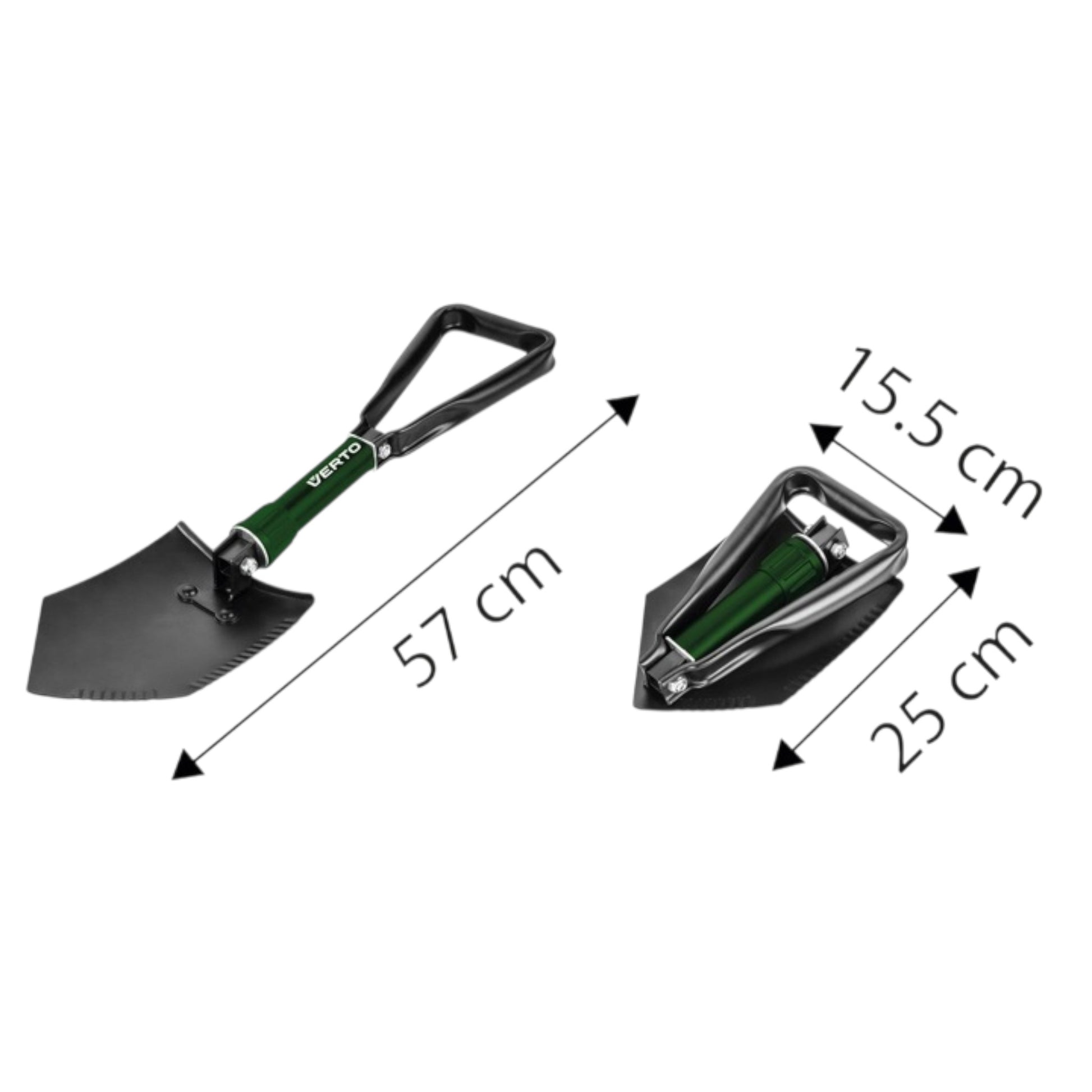 VERTO sulankstomas kastuvas yra praktiškas ir universalus įrankis, skirtas naudoti sode, stovyklaujant ar kaip automobilio įranga. Jis sujungia kompaktiškumą su patogiu darbu.